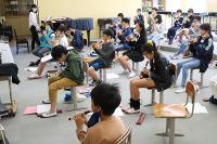 「『ようこそ』という言葉は、入学にぴったりだね。」や「1年生が笑顔になるといいから『にっこり』もいいね。」、「1年生の笑顔は光り輝いているね。」など、たくさんの思いを伝え合いました。集会名を比べたり、いくつかの案をつなぎ合わせたりして、最終的に多数決で集会名が決まりました。代表委員会で話し合った集会名は、先生たちとも相談して、最終的に決定します。