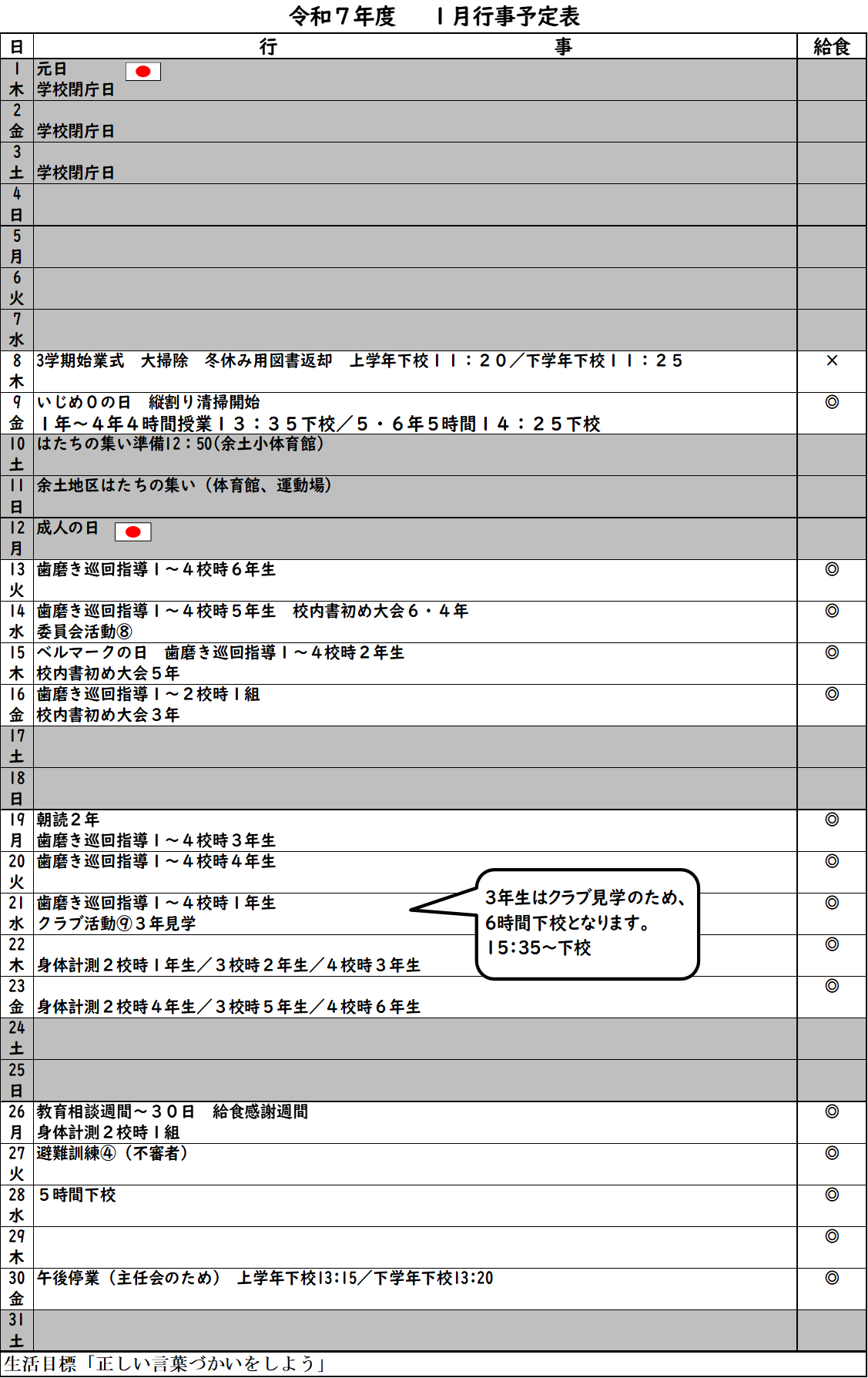 1月行事予定
